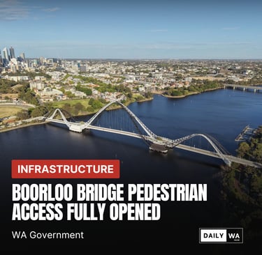 Pedestrian access across Boorloo Bridge has been fully opened, enhancing connectivity between key precincts and expanding active transport options in Perth.