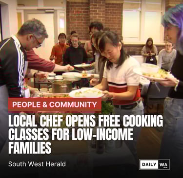 A simple idea is making a meaningful difference in the lives of families across Western Australia’s south west. A local chef has opened free cooking classes for low income households, transforming a professional skillset into a practical community resource focused on dignity, nutrition, and empowerment.