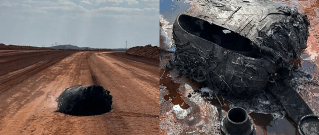 According to initial reports, the miners were conducting routine operations when they noticed a plume of thin smoke rising from a distant ridge. Upon closer inspection, they found what appeared to be a large cylindrical fragment of metal, measuring several metres long, with markings resembling aerospace material. The object’s edges were blackened, suggesting intense heat during re-entry through the atmosphere.