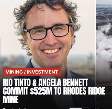 Rio Tinto and Angela Bennett Commit 525 Million Dollars to Rhodes Ridge Signalling Long Term Confidence in WA Mining