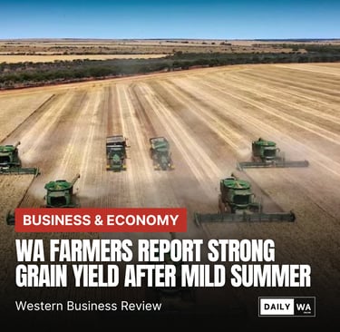 WA farmers are reporting strong grain yields after a mild summer, delivering a boost to regional economies and reinforcing the importance of seasonal stability for the state’s agricultural sector.