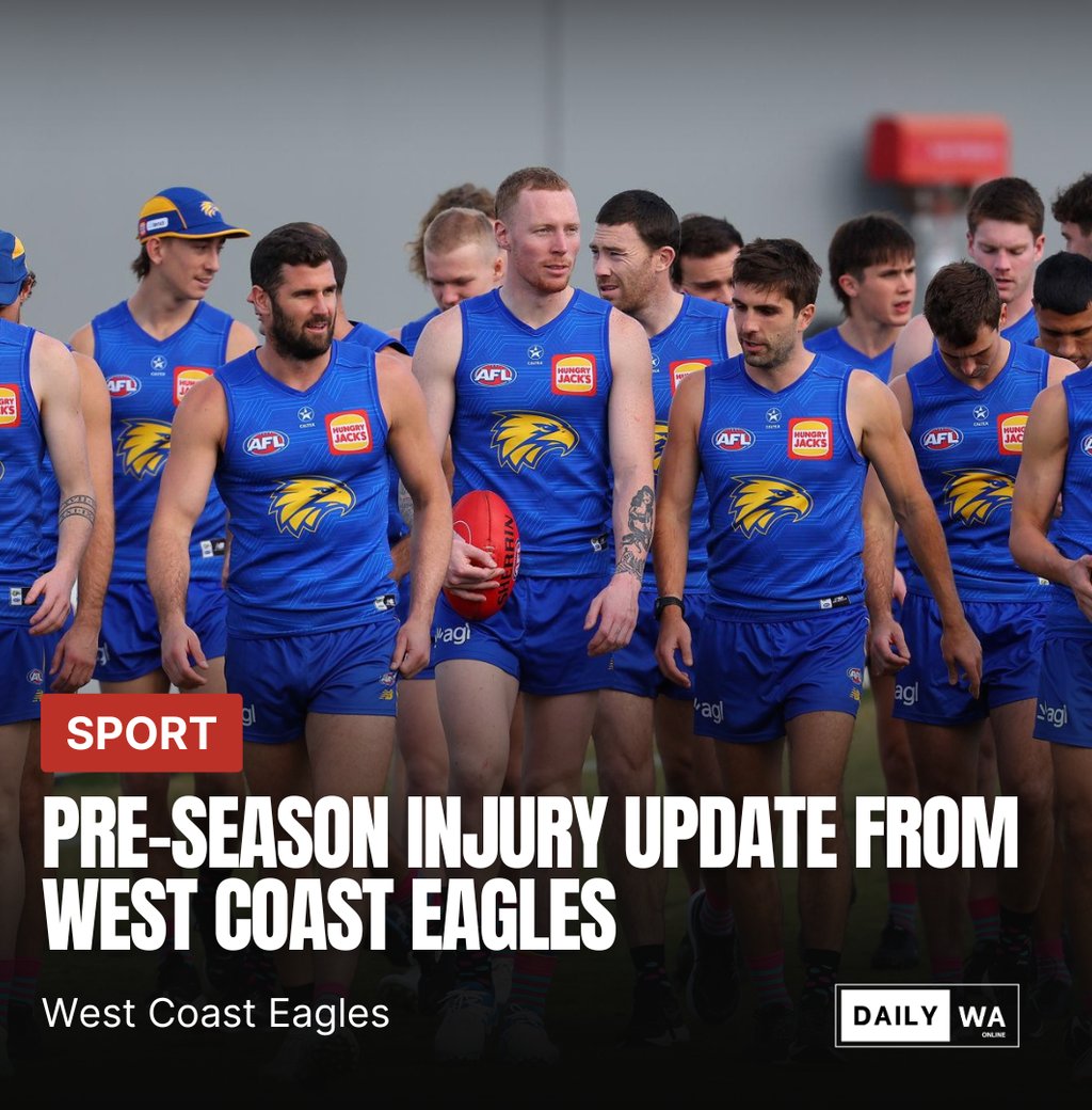 The West Coast Eagles have released a pre season injury update, outlining player recovery timelines and availability as preparations intensify ahead of the upcoming AFL season.